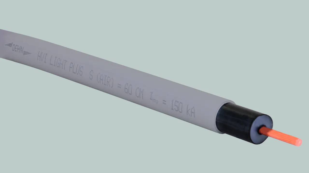 High-voltage-resistant, insulated down conductor for maintaining the separation distance from electrically conductive parts according to DIN EN 62305-3 (VDE 0185-305-3). For use up to an equivalent separation distance of s ≤ 60 cm (in air) or s ≤ 120 cm (solid building material). The HVI light plus Conductor meets the requirements of DIN IEC/TS 62561-8 (VDE V 0185-561-8) and is system-tested.