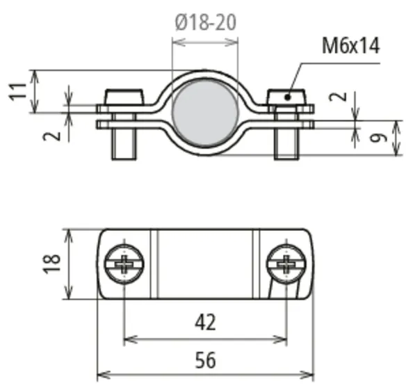 Fixing kit for attaching the HVI light plus Conductor to the HVI light plus supporting tubes, Ø40 mm, consisting of connection plate and fixing ring with stainless steel clamp for the sealing end (including four plastic holder halves and two cable ties).